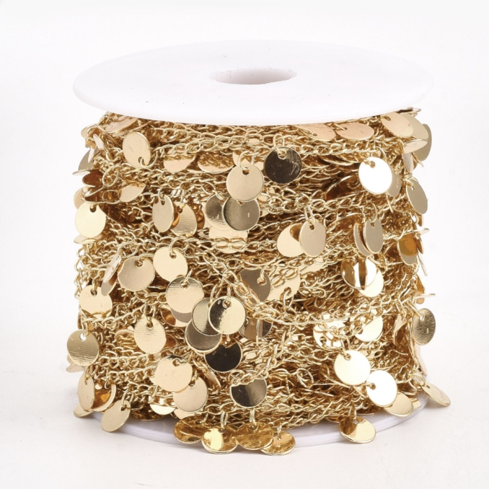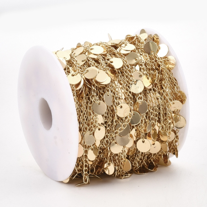 Цепь Ручная Работа, Латунь, Подвеска Диск, Покрытие Золото 18К, Паяная, Размер: 3.2х2х0.4мм, Подвеска 6мм, (УТ100028445) - ᐈ заказывайте в Москве оптом и в розницу ✅Скидки ✅Акции ✅Распродажи ᐈ доставка по всей России ᐈ Интернет-магазин Мир Бусин