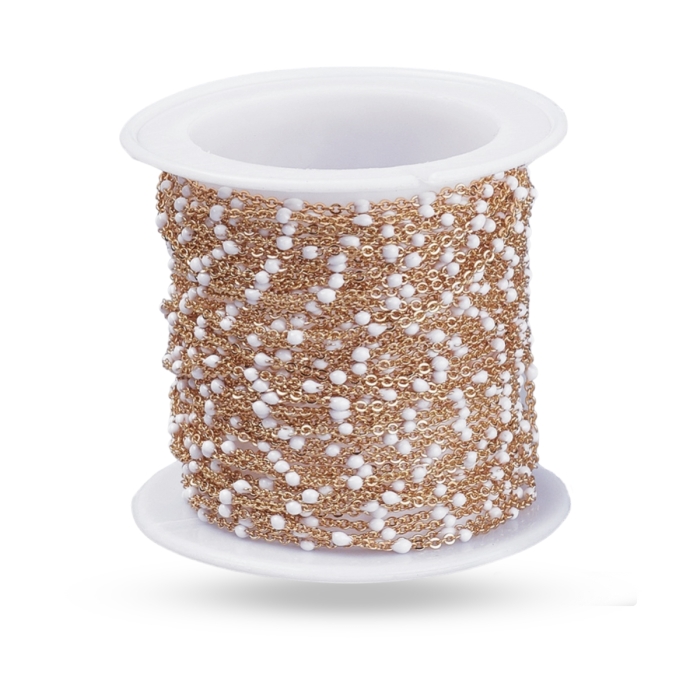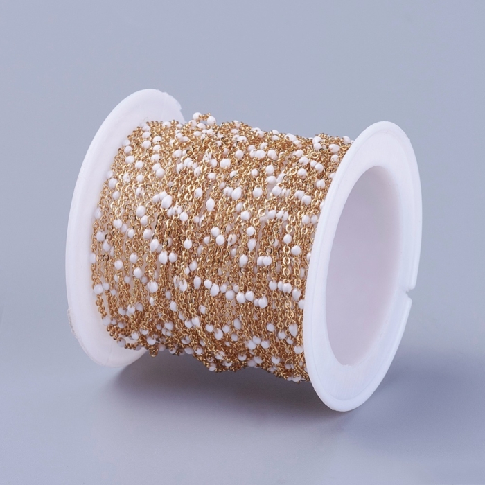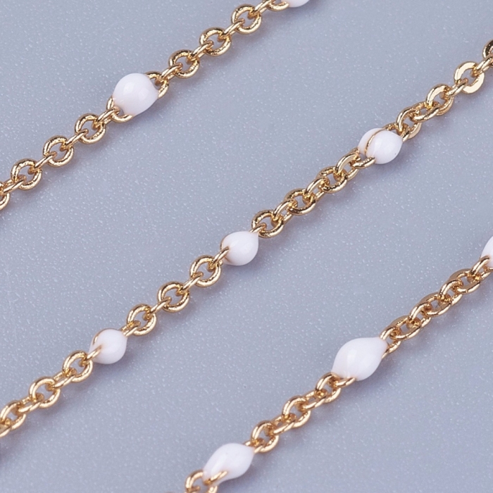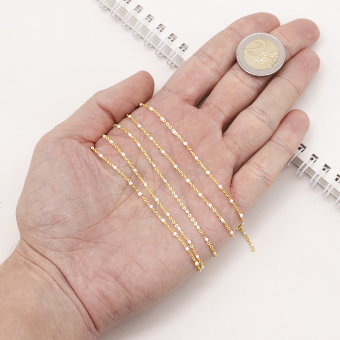 Цепь Ручная Работа, Латунь и Эмаль, Якорное Плетение, Стойкое Покрытие Золото 18К, Паяная, Цвет: Белый, Размер: 1.5мм, (УТ100028475)