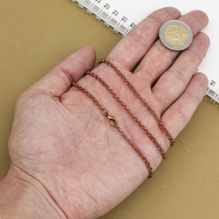 Ожерелье Цепь Железная Rolo, Готовая Основа, Застежка Карабин-лобстер, Цвет: Медь, Длина 60см, Звено 3х0.8мм, (УТ100028559)