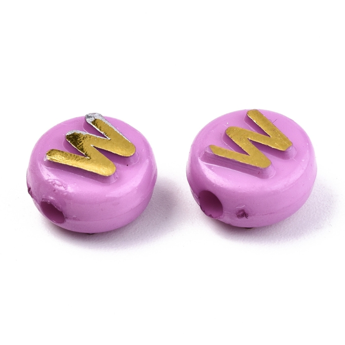 Бусины акриловые с металлическими буквами, английский алфавит, со сквозным отверстием. Плоско-круглые. Цвет Бусин: Микс, Буквы: Золото
