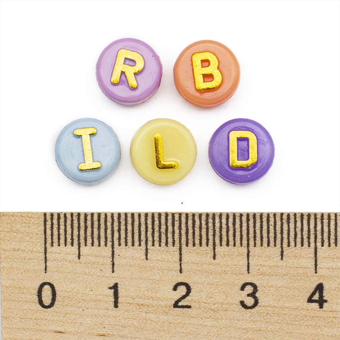 Бусины Акриловые Буквы, Плоские Круглые с Металлическими Буквами Цвет: Бусины Микс, Буквы Золото, Размер: 10х6мм, Отверстие 2мм, около 77шт/25г, (УТ100028631) - ᐈ заказывайте в Москве оптом и в розницу ✅Скидки ✅Акции ✅Распродажи ᐈ доставка по всей России ᐈ Интернет-магазин Мир Бусин