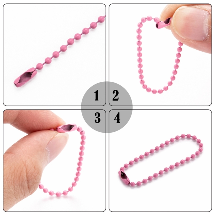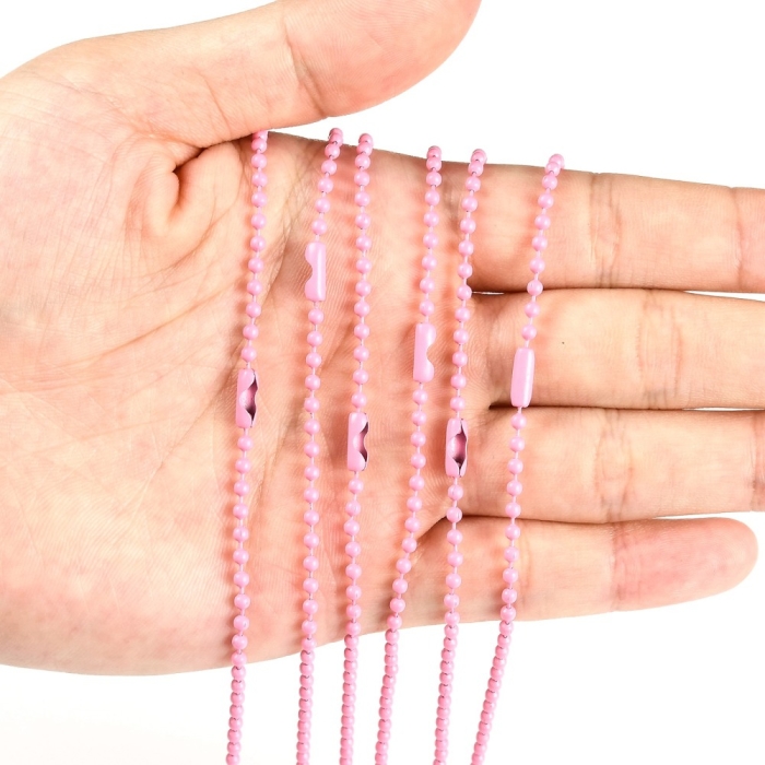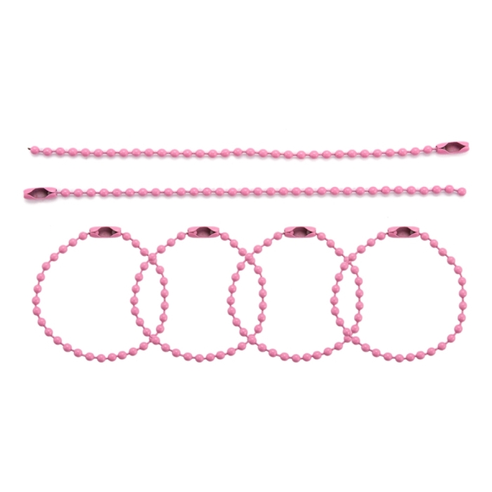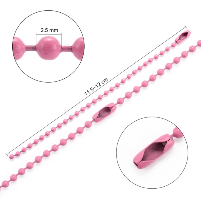 Цепочка Шариковая с Застежкой, для Игрушек, Ценников, Бирок, Паяная, Цвет: Розовый, Размер: 115-120мм, Диаметр 2.5мм, Застежка: 8х3мм, (УТ100028686)