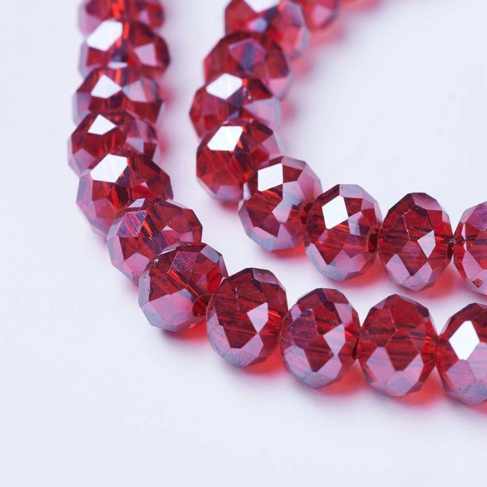 Бусины Стеклянные Гальваника Рондель Граненые, Кирпичный, 4х3мм, Отверстие 0.4мм, около 110шт/40см/нить, (УТ100028743)