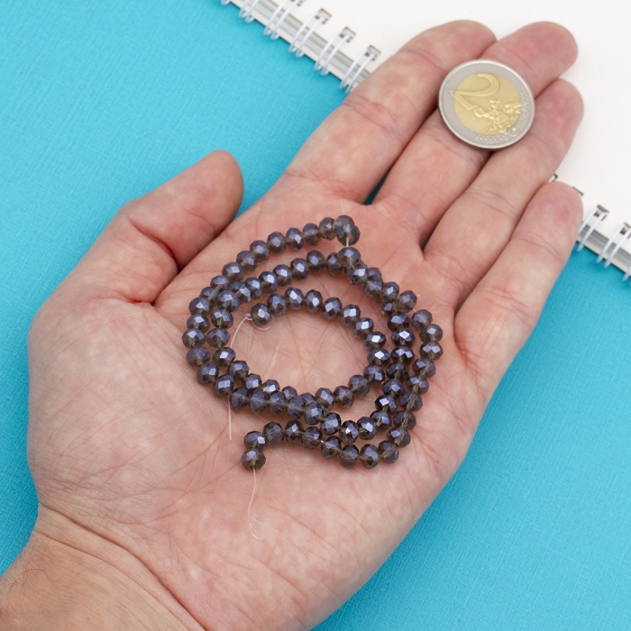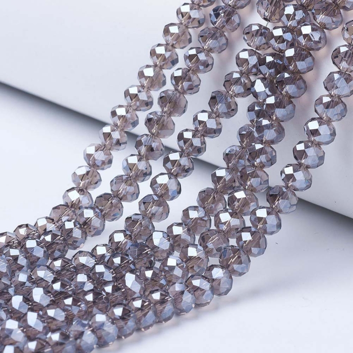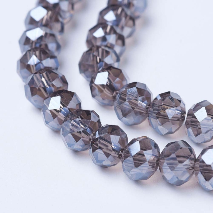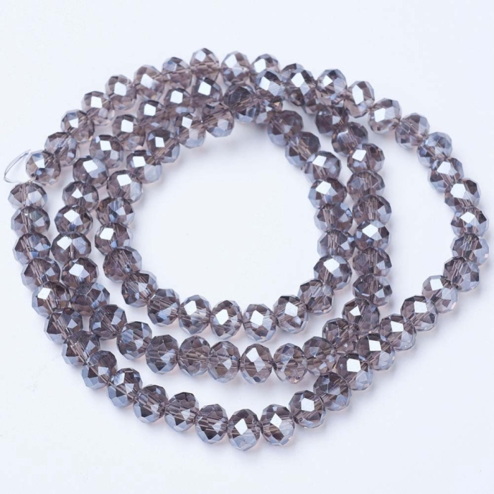 Бусины Гальваника Стекло, Граненые, Рондель, Цвет: Серый, Размер: 6х5мм, Отв-тие: 1мм, около 80шт/39см/нить, (УТ100028745)