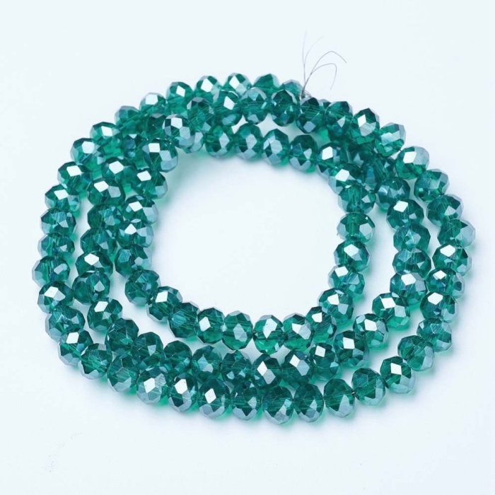 Бусины Гальваника Стеклянные Граненые Рондель, Темно-Голубой, 6х5мм, Отверстие 1мм, около 80шт/39см/нить, (УТ100028755)