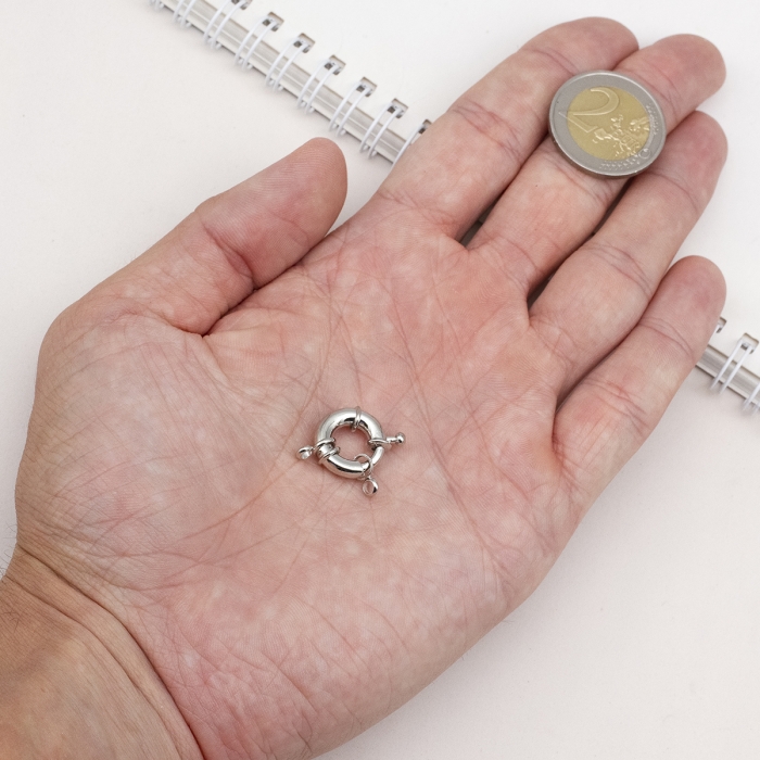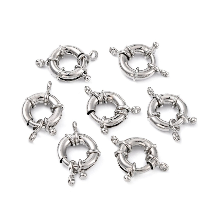 Застежка кольцо пружинное — это один из самых распространенных и удобных типов застежек, применяемых для изготовления украшений, таких как цепочки, браслеты, ожерелья и другие бижутерные изделия. Она проста в использовании, надежна и обладает классическим внешним видом, что делает ее универсальной и подходящей для различных стилей украшений. Платиновое покрытие придает застежке благородный блеск и обеспечивает повышенную устойчивость к износу и коррозии, благодаря чему украшение сохраняет свою привлекательность даже при частом ношении.