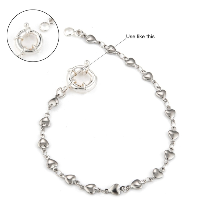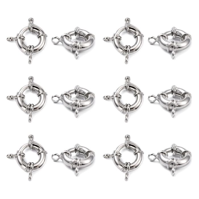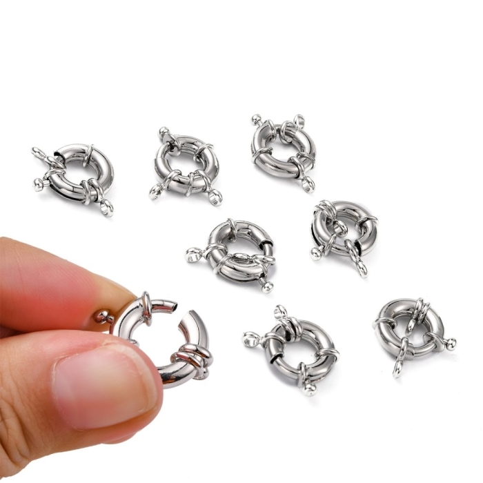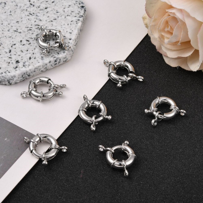Пружинный механизм внутри застежки позволяет легко открывать и закрывать кольцо: при нажатии на рычаг механизм сжимается, открывая кольцо для крепления или отсоединения от других элементов украшения. Застежка часто используется для цепочек, браслетов, а также для крепления подвесок и кулонов, позволяя быстро менять декоративные элементы. Пружинные кольца также находят применение в ремонте украшений, когда необходимо заменить сломавшуюся застежку. Пружинный механизм обеспечивает надежное закрытие, минимизируя риск случайного раскрытия и потери украшения, а также делает застежку удобной для ежедневного использования.