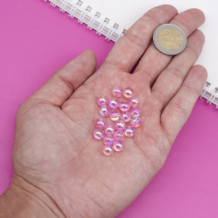 Бусины Акрил Экологичные, Прозрачные, Круглые, АВ цвет, Цвет: Жемчужно-розовый, 8мм, Отверстие 1.5мм, 95шт/25г, (УТ100028911)