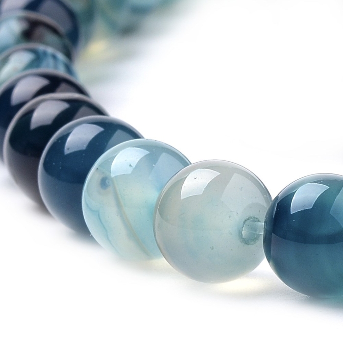 Бусины Натуральный Полосатый Агат Круглые, Небесно-Голубой, 8мм, Отверстие 1мм, около 45шт/37см/нить, (УТ100029143)
