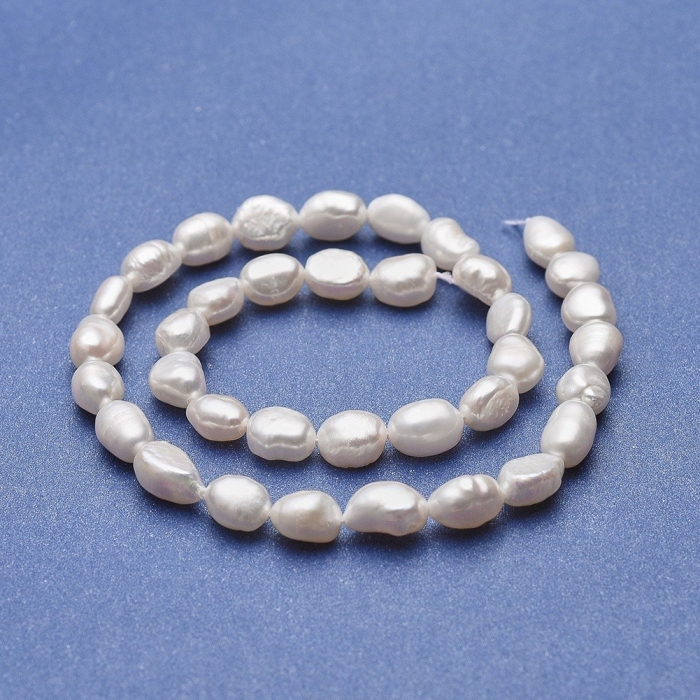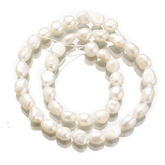 Жемчуг Натуральный Пресноводный, Полированный,Класс АА, Самородок, Белый, 8-12х6-8мм, Отв-тие 0.5мм, около 34шт/34см/нить (УТ100029153)