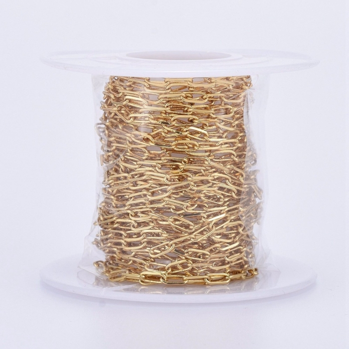Цепь из Латуни Якорное Плетение, Вытянутые, Звено, Стойкое Покрытие Золото 18К, Звено: 6х2.5х0.6мм, (УТ100029264) - ᐈ заказывайте в Москве оптом и в розницу ✅Скидки ✅Акции ✅Распродажи ᐈ доставка по всей России ᐈ Интернет-магазин Мир Бусин