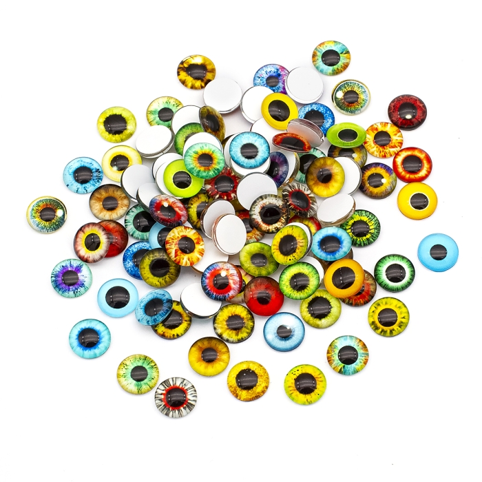 Набор Кабошоны Глазки Дракона для Рукоделия, Стеклянные, Полукруглые, Микс, 12х4мм, 2шт/цвет, 50 цветов, 100шт/упаковка, (УТ100029388)Цвет: