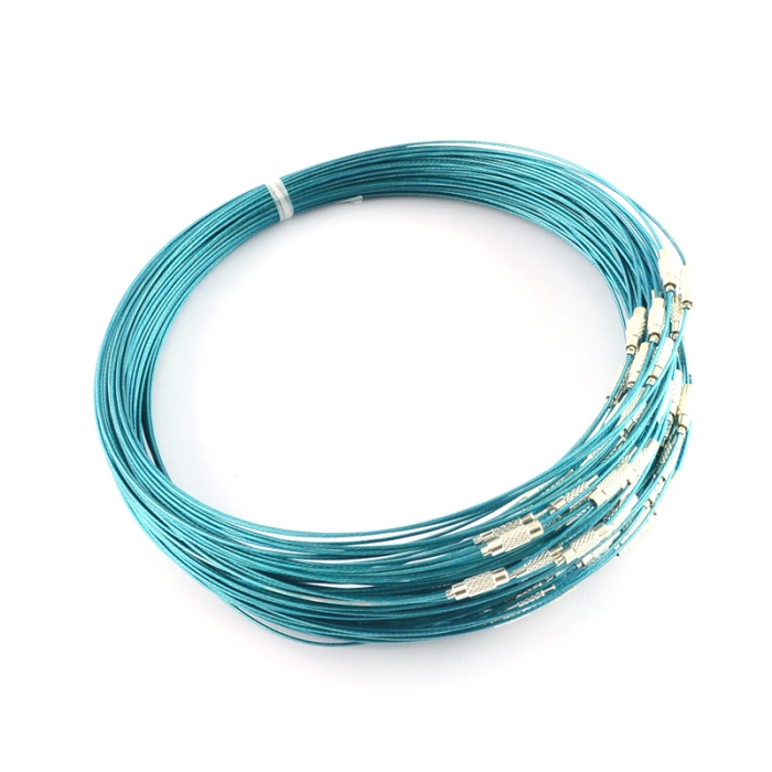 Основа для Ожерелья, Проволока Нержавеющая Сталь, винтовая Застежка из Латуни, Цвет: Темно-голубой, Длина 45см, Толщина 1мм, (УТ100029398) - ᐈ заказывайте в Москве оптом и в розницу ✅Скидки ✅Акции ✅Распродажи ᐈ доставка по всей России ᐈ Интернет-магазин Мир Бусин