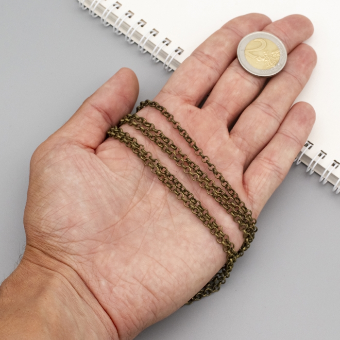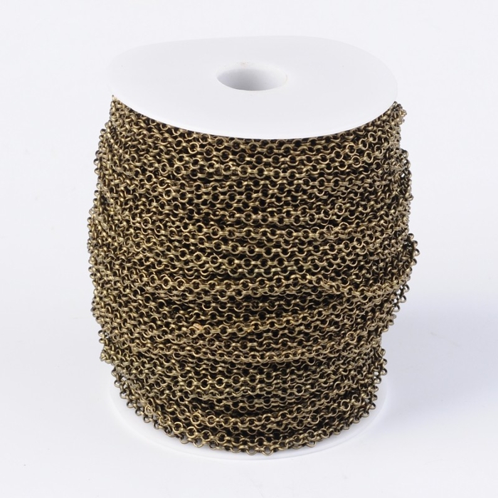 Цепь из Железа, Rolo, Круглое Звено, Непаянная, без Свинца, Кадмия и Никеля. Цвет: Античная Бронза.