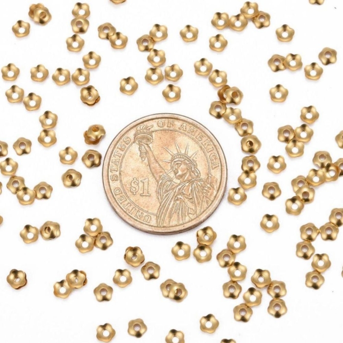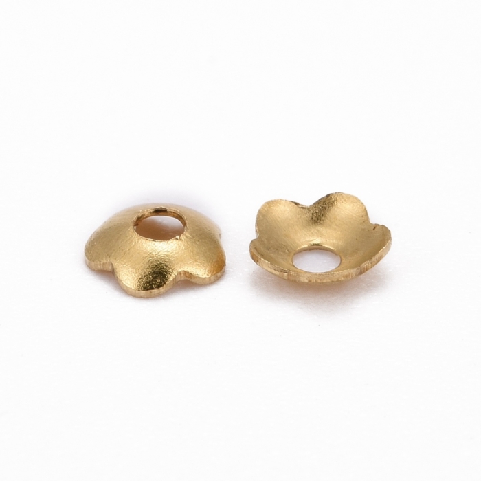 hot Шапочки для Бусин, Латунь, Цветок, Цвет: Золото, 4мм, Отверстие 1.2мм, (УТ100029419)