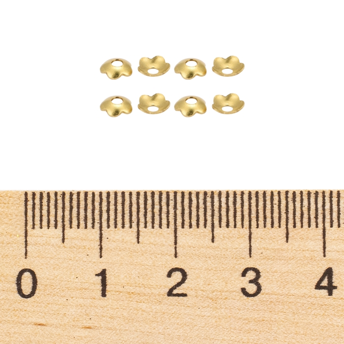 Шапочки для Бусин, Латунь, Цветок, Цвет: Золото, 4мм, Отверстие 1.2мм, (УТ100029419)