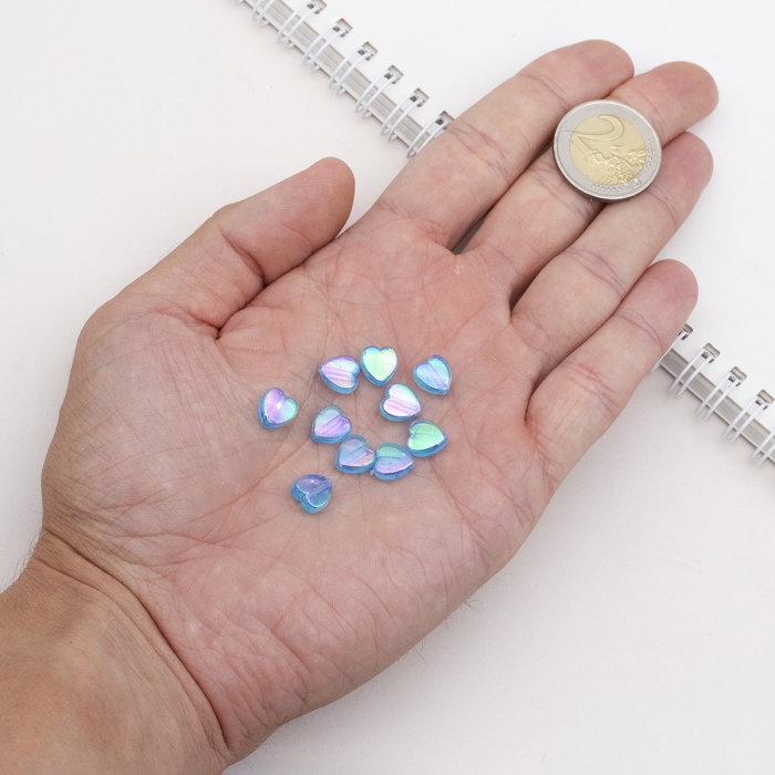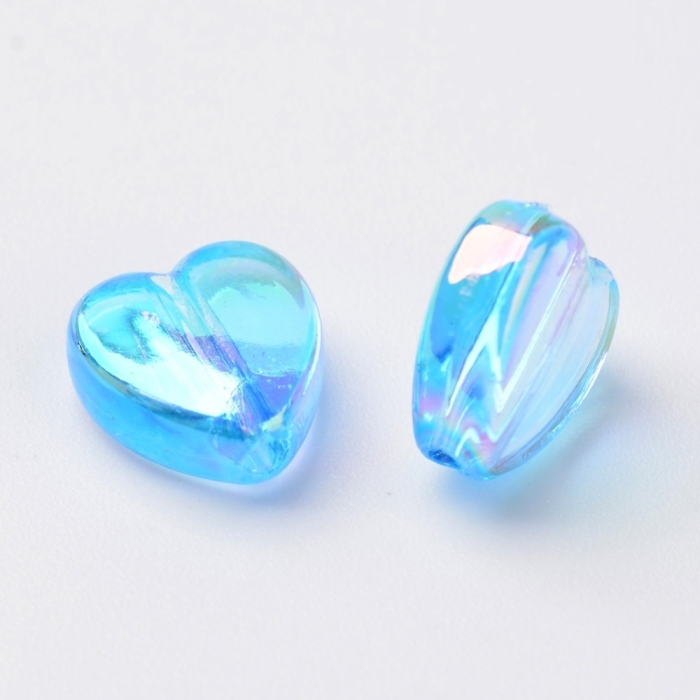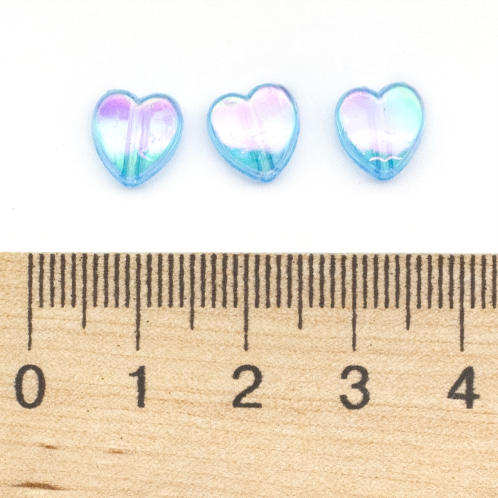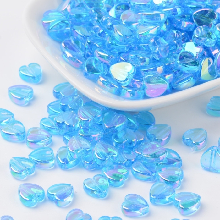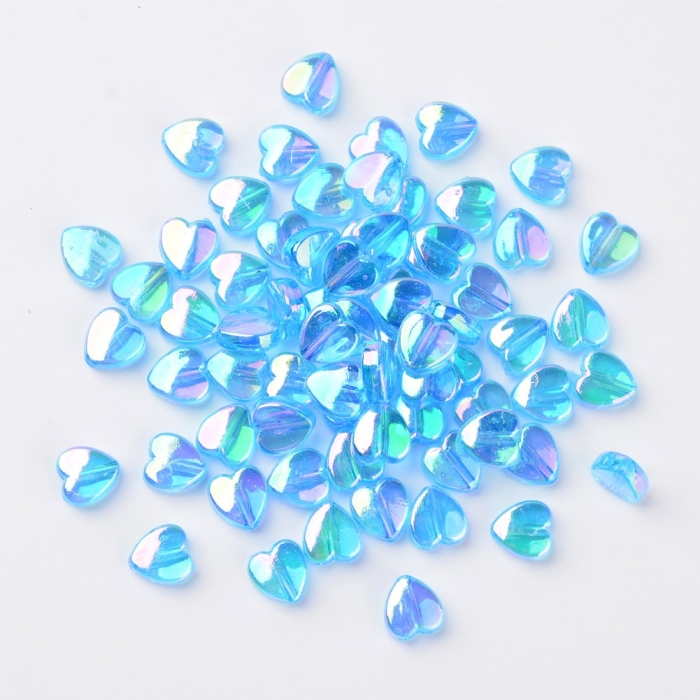 Бусины Акрил, Прозрачные, АВ цвет, Сердце, Цвет: Голубой, Размер: 8х8х3мм, Отверстие 1.5мм, около 130шт/25г, (УТ100029496)