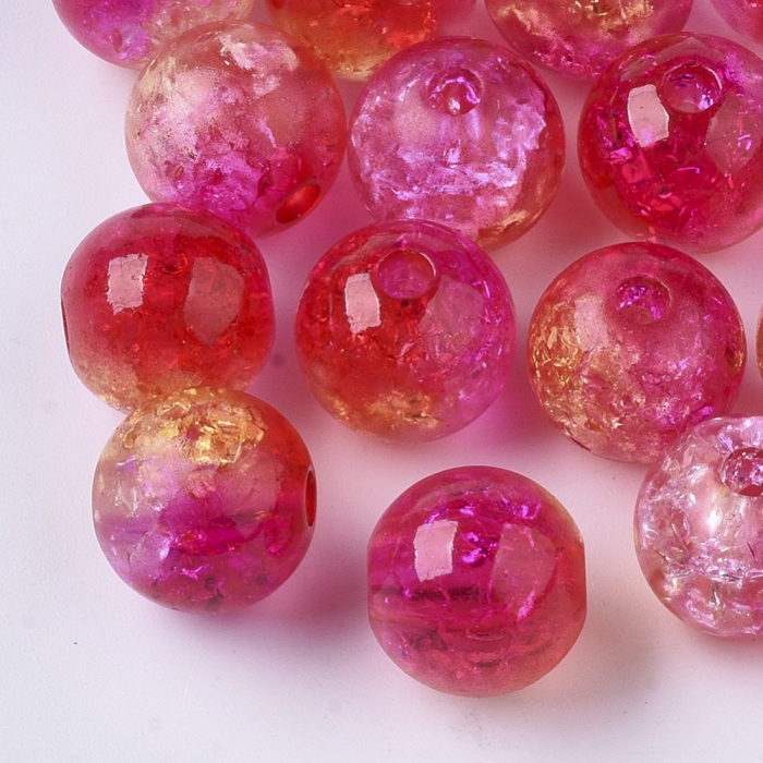 Бусины Акрил "Битое Стекло", Имитация, Круглые, Цвет: Малиновый, Диаметр: 10мм, Отверстие 2мм, около 45шт/25г, (УТ100029547)