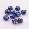 Бусины из Смолы, Круглые, Окрашеные Напылением с Цветочным Узором, Цвет: Темно-синий.