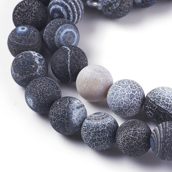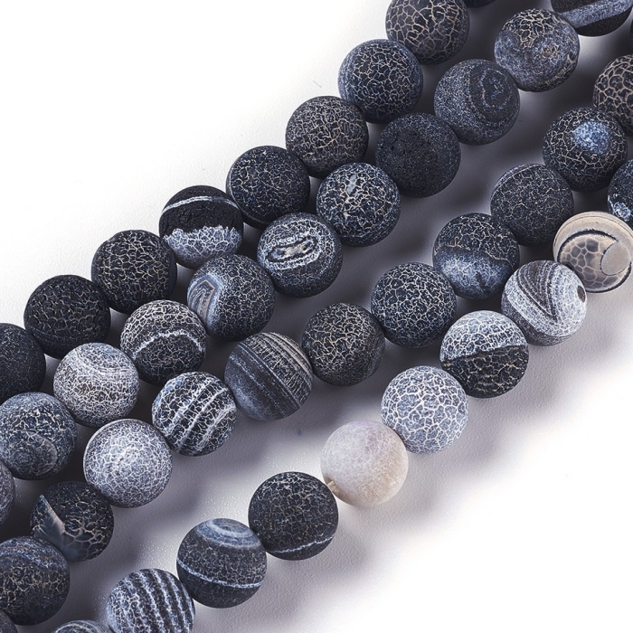 Бусины Агат Кракле Натуральный, Круглые, Термоокрашенные, На нитях, Темно-серый, 8мм, Отверстие 1.2мм, около 45шт/34.5см/нить, (УТ100029541)