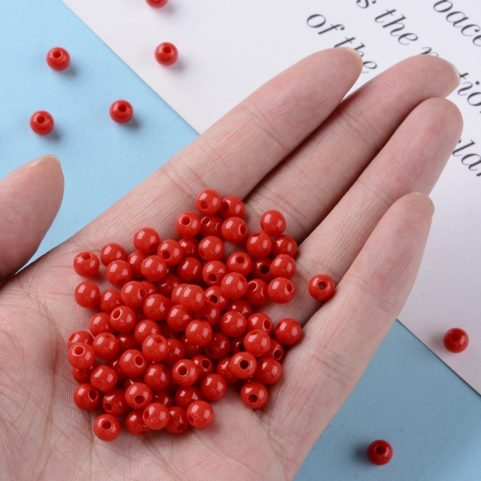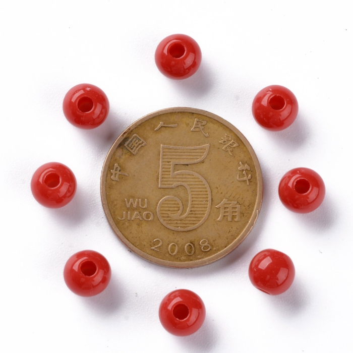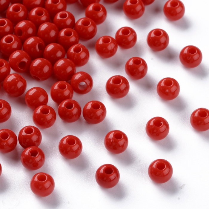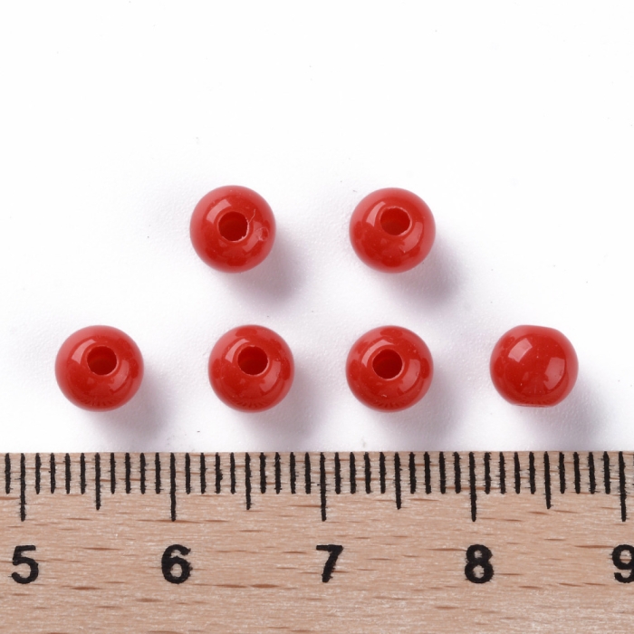 Бусины Стеклянные Кракле, "Битое Стекло" Круглые, Красный, 4мм, Отверстие 1мм, около 190шт/76см/нить, (УТ0002885)