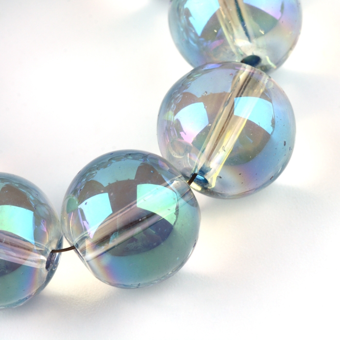 Эти бусины с бензиновым или радужным покрытием имеют на поверхности характерный цветной перелив. Очень часто такие бусины имеют маркировку "АВ" (от лат. Aurora Borealis – "северное сияние"). Бусины с радужным покрытием переливаются на солнце всеми цветами радуги.