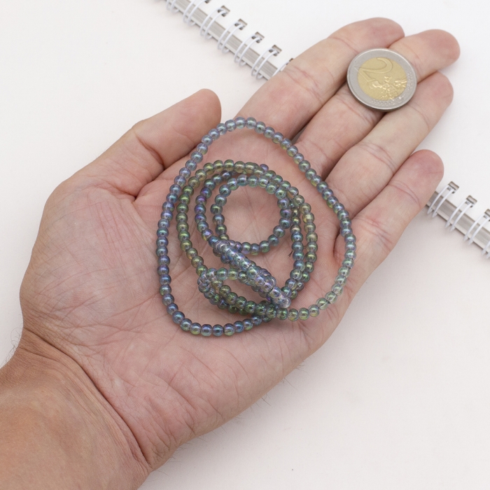 Бусины Стеклянные Гальванические, Радужное Покрытие, Круглые, Цвет: Бирюзовый, Размер: Диаметр 4х4.5мм, Отв-тие: 1мм, около 190шт/29см/нить, (УТ100029637)