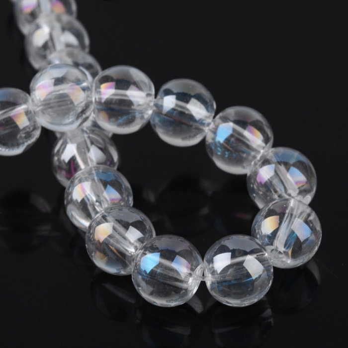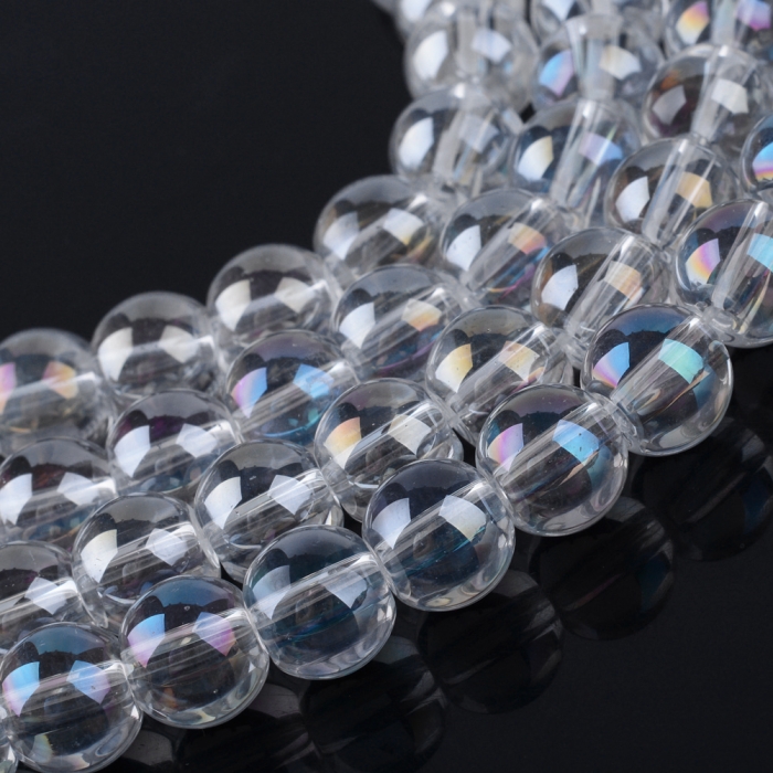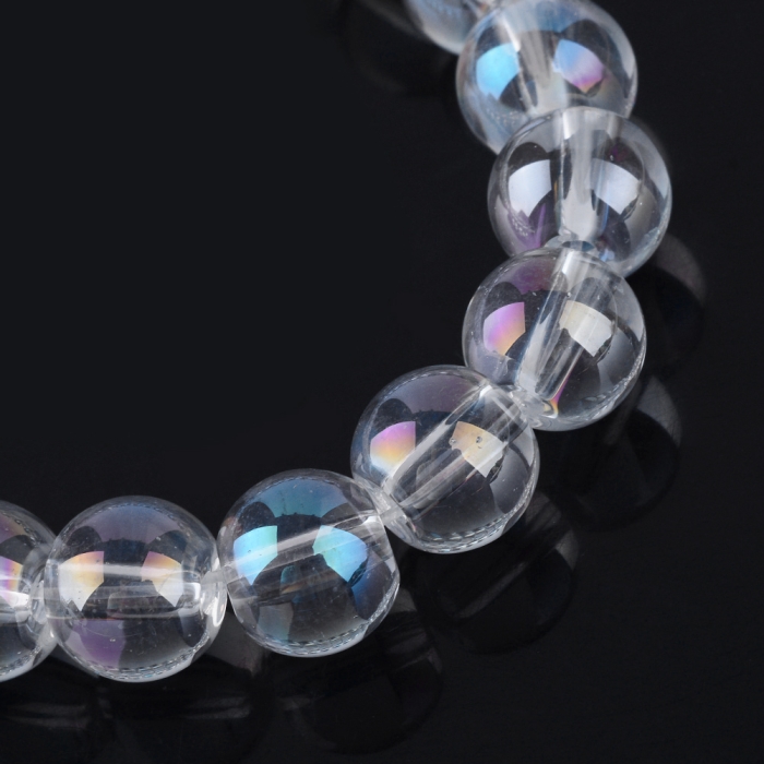 Бусины Стеклянные, Гальваника, Покрытие АВ цвет, Круглые, Цвет: Прозрачный.