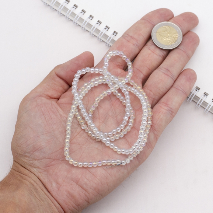 Бусины Стеклянные Гальванические, Прозрачные, Круглые, Цвет: АВ цвет, Размер: Диаметр 4х4.5мм, Отв-тие: 1мм, около 190шт/29см/нить, (УТ100029640) - ᐈ заказывайте в Москве оптом и в розницу ✅Скидки ✅Акции ✅Распродажи ᐈ доставка по всей России ᐈ Интернет-магазин Мир Бусин