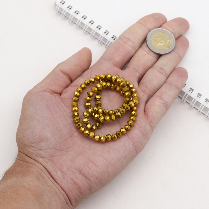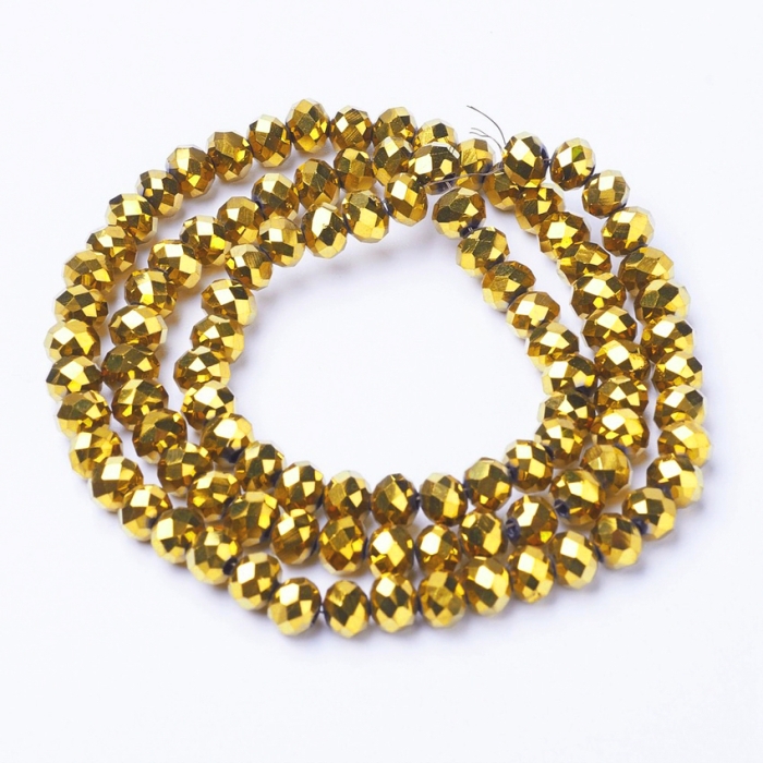 Бусины Гальваника Стекло, Золотое Покрытие, Граненые, Рондель, Размер: 6х5мм, Отв-тие 1мм, около 80шт/40см/нить, (УТ100029662)