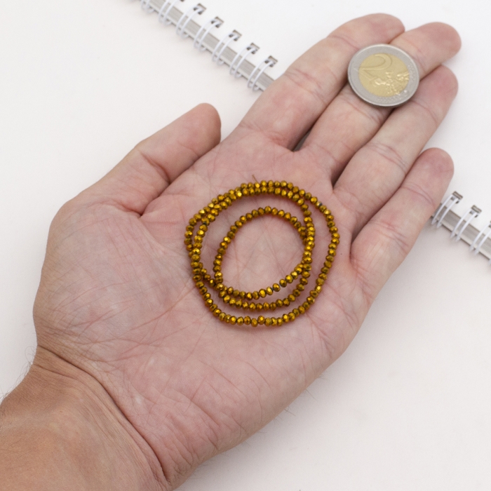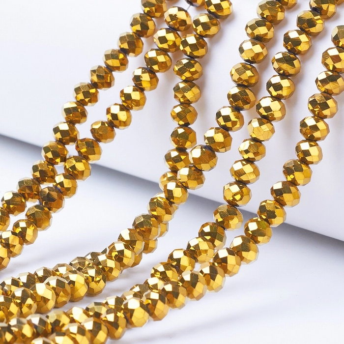 Бусины Гальваника Стекло, Полное Покрытие Покрытие, Граненые, Рондель, Золото, 3х2мм, Отверстие 0.8мм, около 145шт/34см/нить, (УТ100029663)
