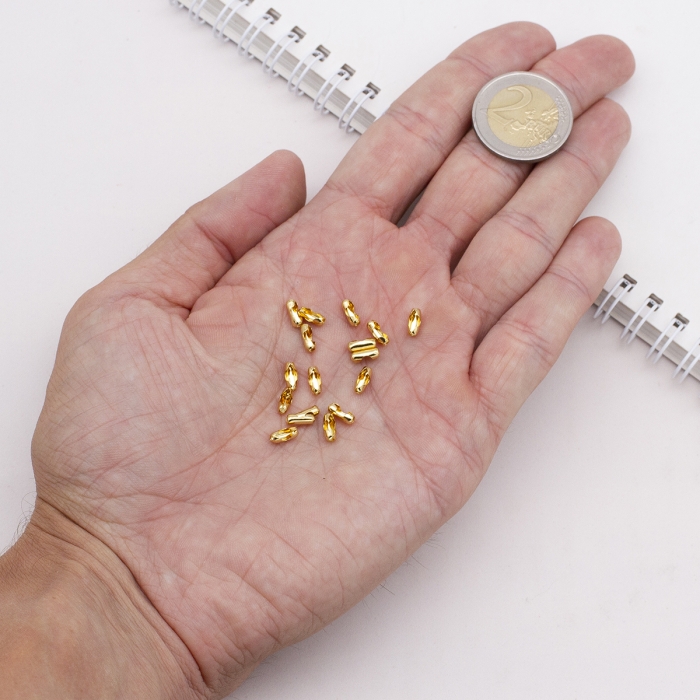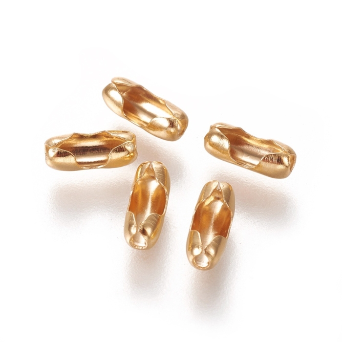 Застежка Коннектор для Шариковой Цепочки, Нержавеющая Сталь, Цвет: Золото, Размер: 7х3мм, для Шарика 2мм, 50шт/упаковка, (УТ100029694)
