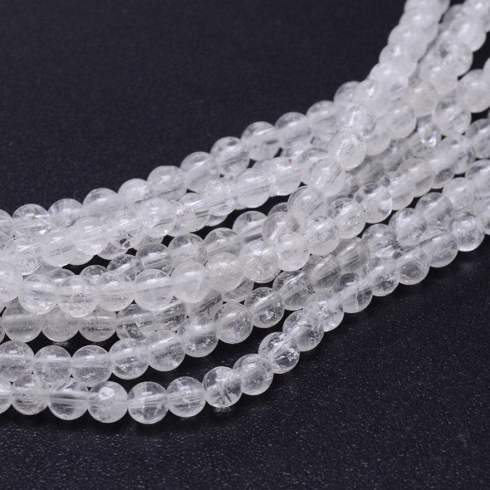 Бусины Натуральный Горный Хрусталь, на нитях, Круглые, 4мм, Отверстие 1мм, около 86шт/36см/нить, (УТ100029794)