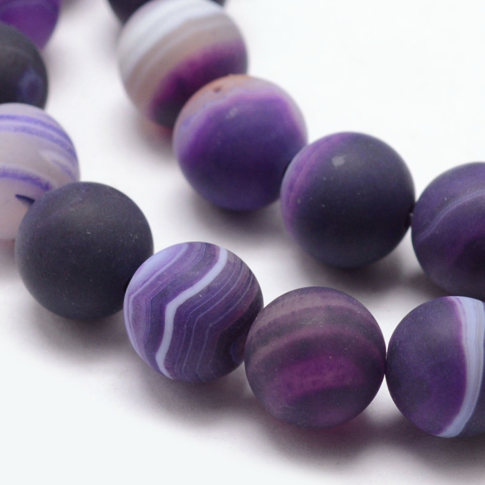 Бусины Натуральный Полосатый Агат Класс А Морозный Стиль Окрашенные, Круглые, Цвет: Индиго.