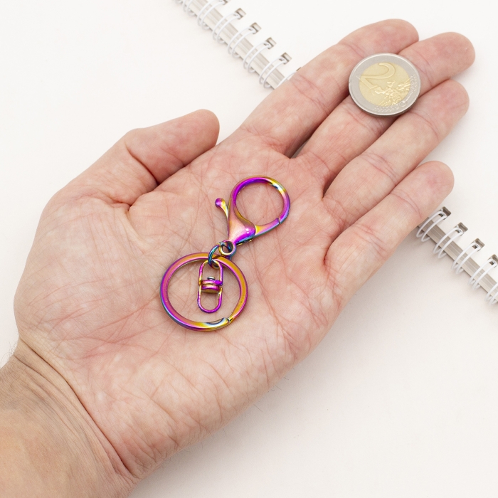 Размер: Длина 69мм. Карабин 34х23х5мм, Кольцо 30х2.5мм, Поворотная застежка 19х8.5мм.