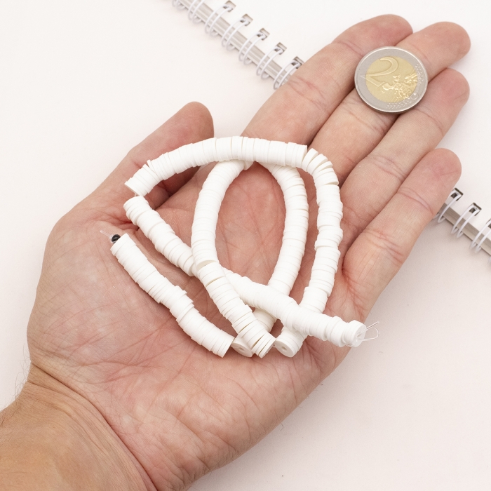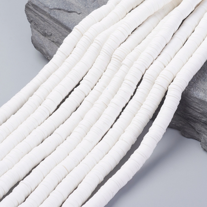 Бусины из Полимерной Глины, Ручная Работа, Круглые Плоские, Белый, 8х0.5-1мм, Отверстие 2мм, Около 370шт/43см/нить (УТ100029974)