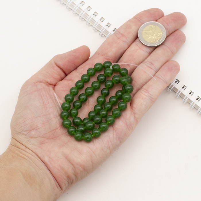 Бусины Натуральный Тайваньский Нефрит, на нитях, Круглые, Окрашенные, Темно-зеленый, 8мм, Отв. 1мм, около 45шт/37.5см/нить, (УТ100030111)