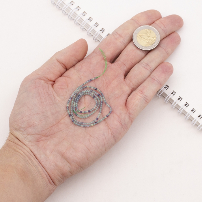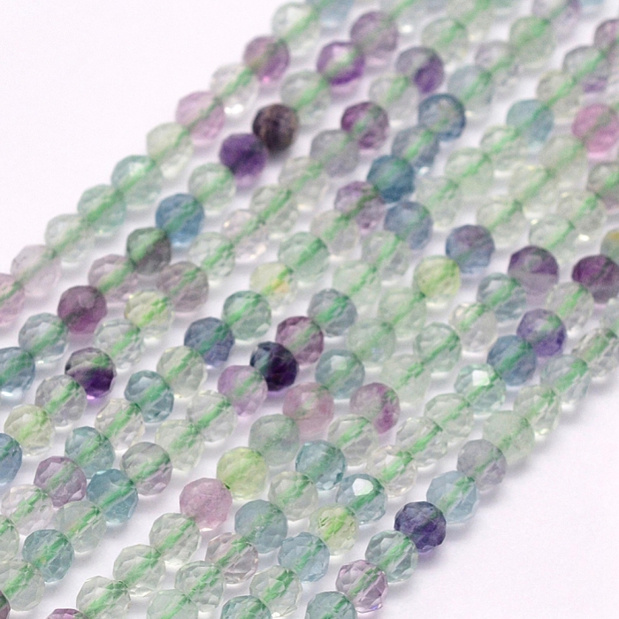 Бусины Натуральный Флюорит На нитях, Круглые, Граненые, Размер: 2-2.5х2мм, Отверстие: 0.5мм, около 155шт/40см/нить, (УТ100030144)