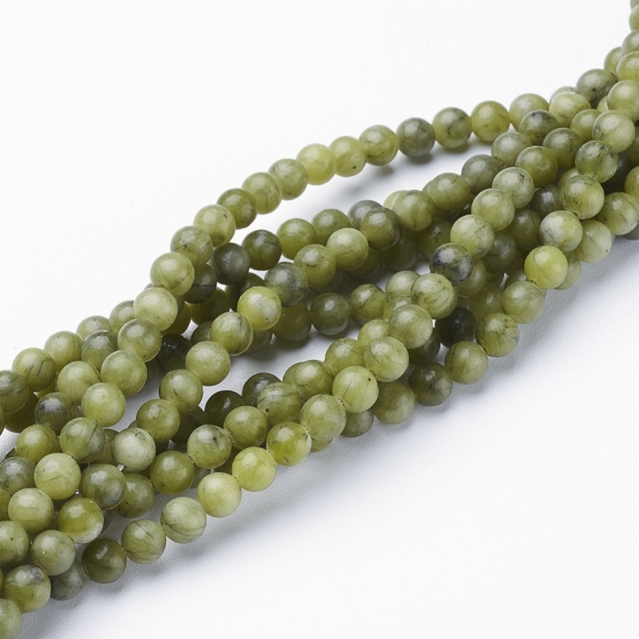 Бусины Натуральный Тайваньский Нефрит Круглые, Светло-Оливковый, 4мм, Отверстие 0.8мм, около 86шт/38см/нить, (УТ100030187)
