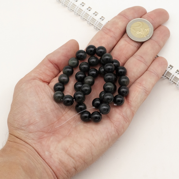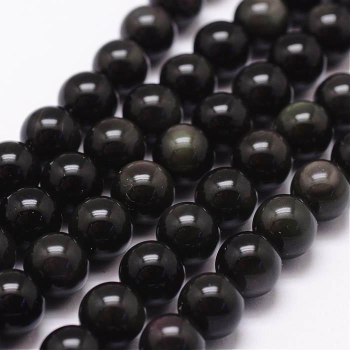Бусины Натуральный Радужный Обсидиан, На нитях, Класс ААА, Круглые, 8мм, Отверстие 1мм, около 45шт/38см/нить, (УТ100030193)