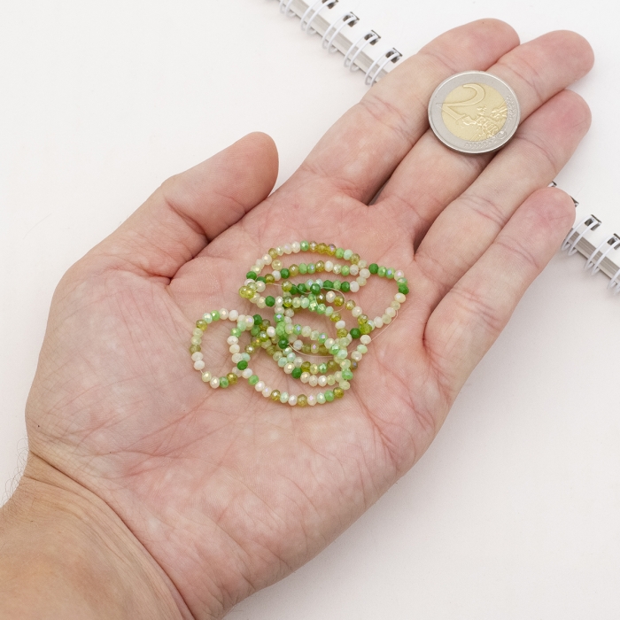 При огранке стеклянных бусин используются уникальные технологии. В результате бусины получаются разноцветными и многомерными. Из стеклянных бусин можно создавать броши, кулоны, браслеты, ожерелья, заколки для волос и другие украшения, а также декорировать одежду, обувь, шляпы, сумки и т.д.
