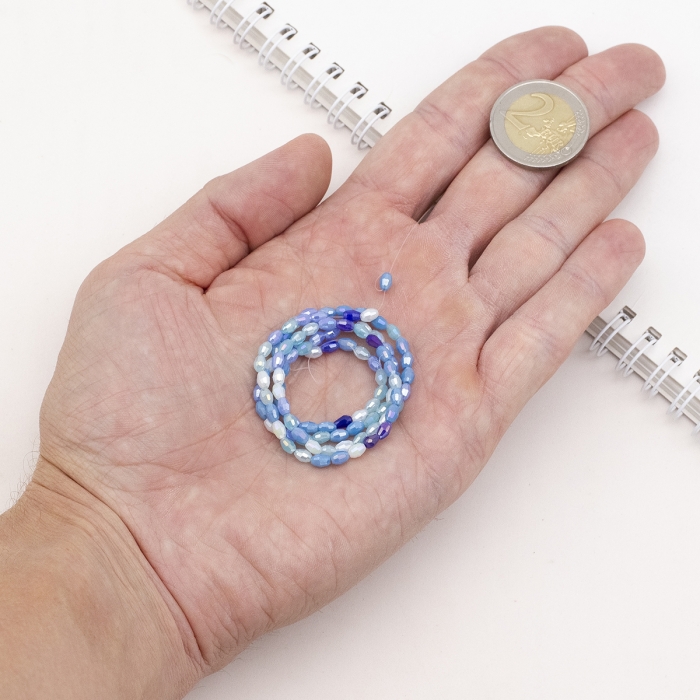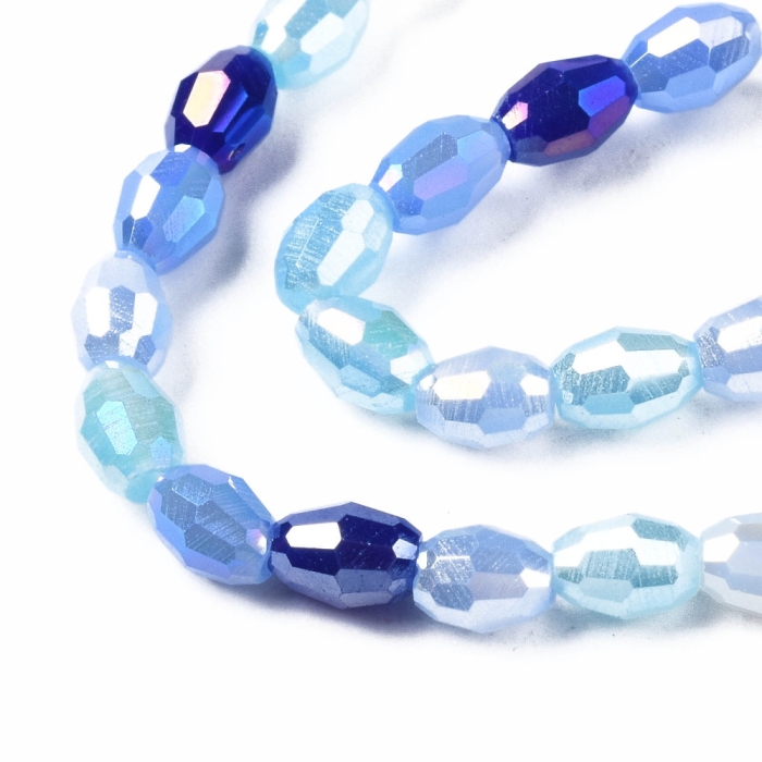 Бусины Гальваника Стекло АВ-Цвет, Граненые, Рис, Цвет: Микс, Размер: 4.5х3мм, Отверстие 0.7мм, около 92шт/38см/нить, (УТ100030302)