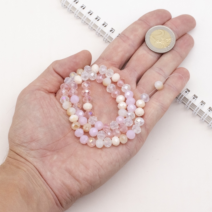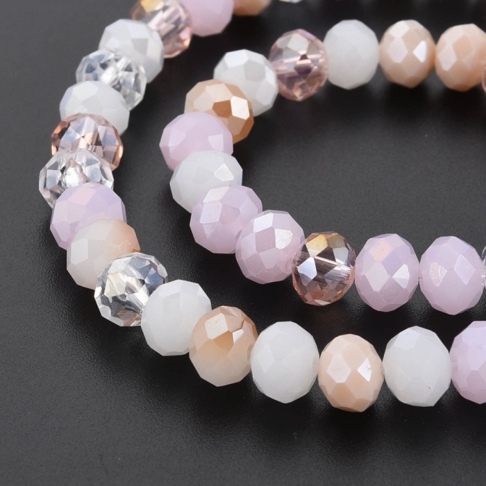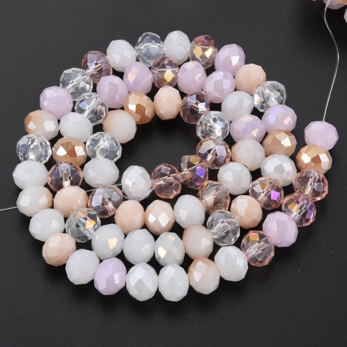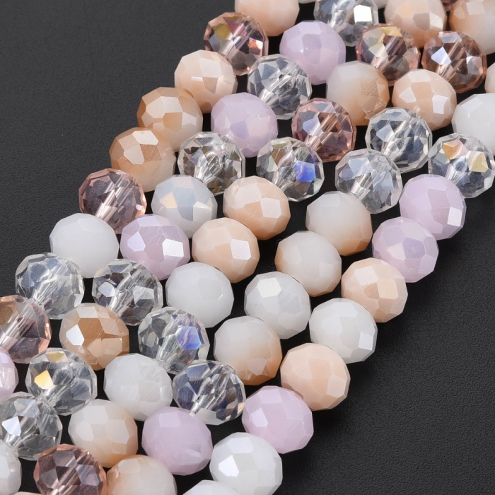 Бусины Гальваника Стекло АВ-Цвет, Граненые, Рондель, Цвет: Жемчужно-розовый, Размер: 7.5-8х6мм, Отверстие 1.5мм, около 65шт/40см/нить, (УТ100030325)