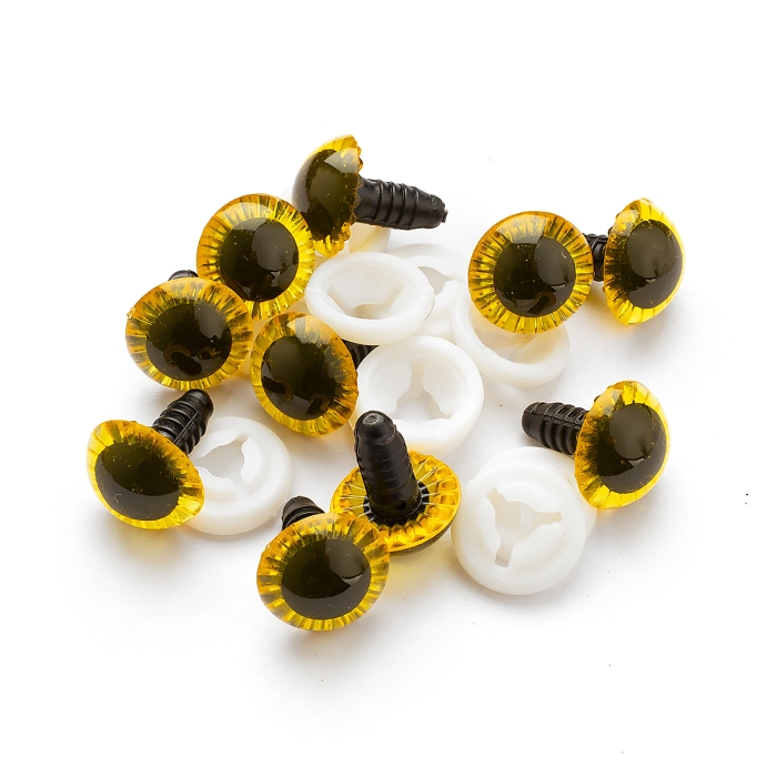 Глазки для Игрушек и Кукол со Штифтом и Фиксатором Пластиковые, Желтые, 15мм, (УТ100030408)