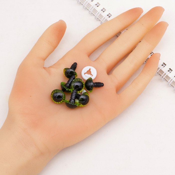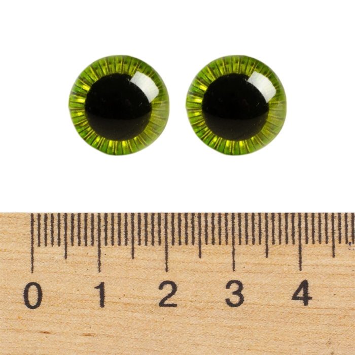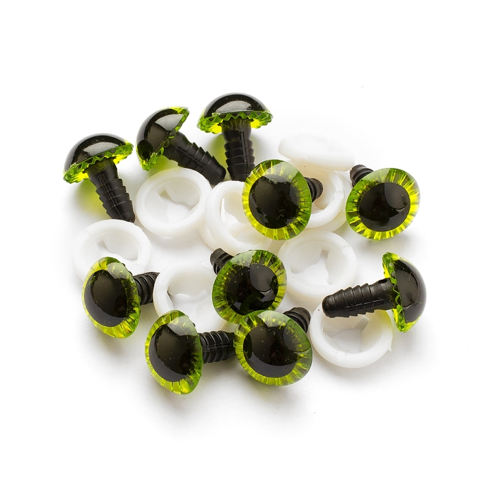 Глазки для Игрушек и Кукол со Штифтом и Фиксатором Пластиковые, Желто-Зеленые, 15мм, (УТ100030410)