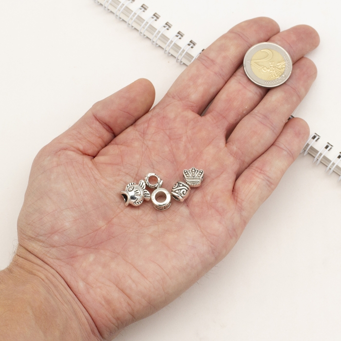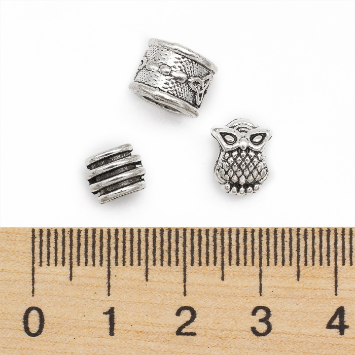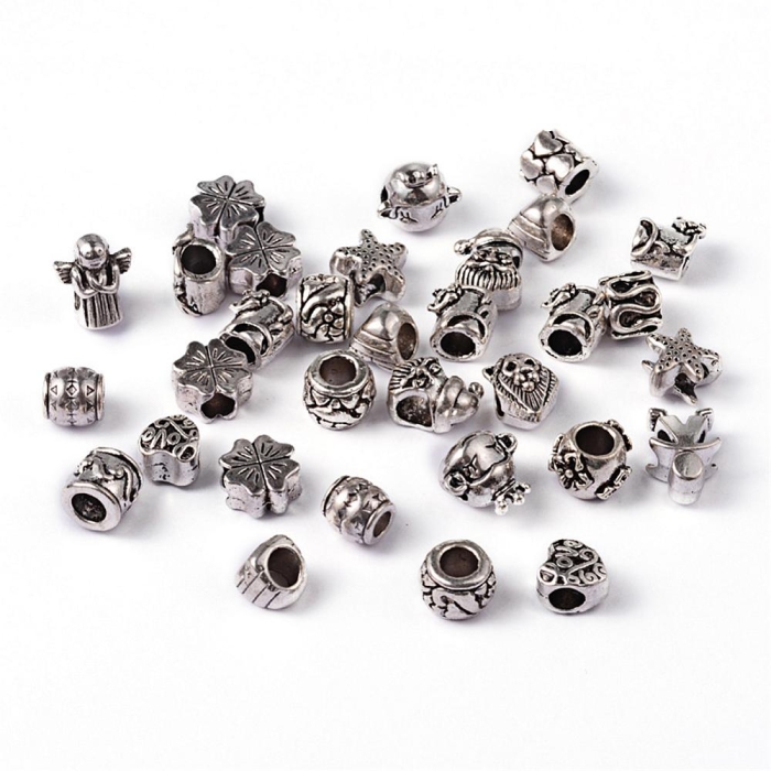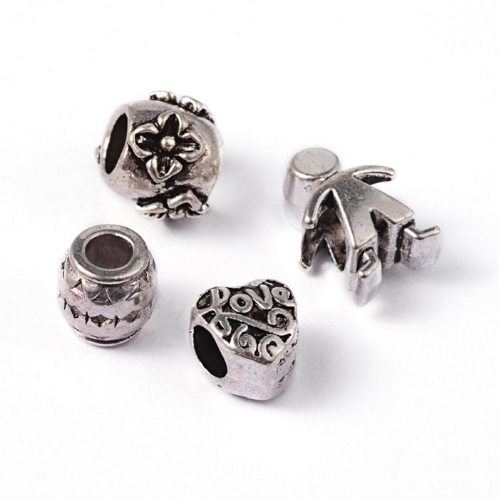 Набор Шармы Евробусины из Сплава, Микс, Цвет: Античное Серебро, Размер: 7-13мм, Отверстие 4-5мм, 100шт/набор, (УТ100030426)