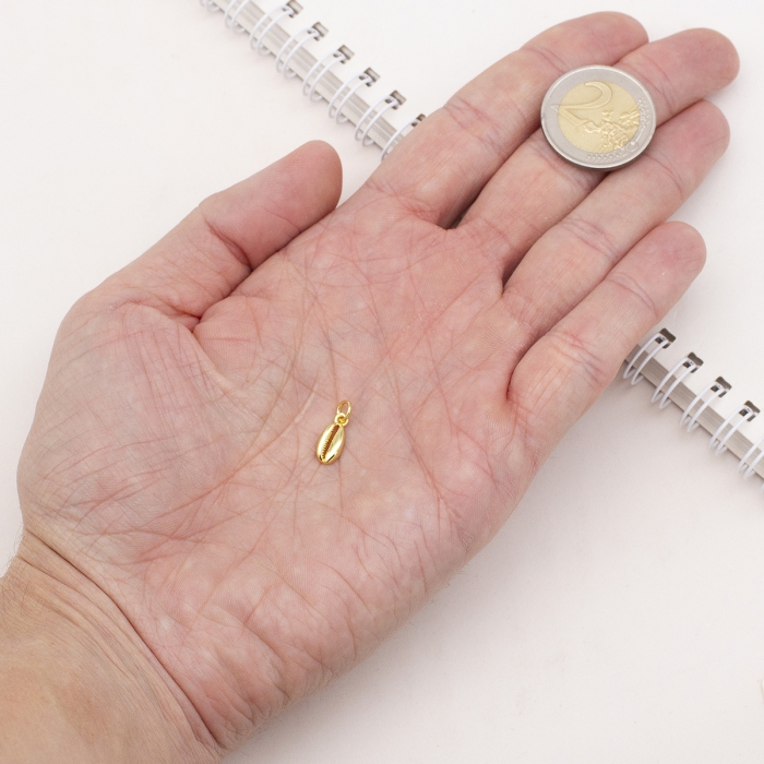 Подвеска Латунь, Ракушка Каури, Цвет: Золото, Размер: 12.5х6х2мм, Отверстие 3мм, (УТ100030633)