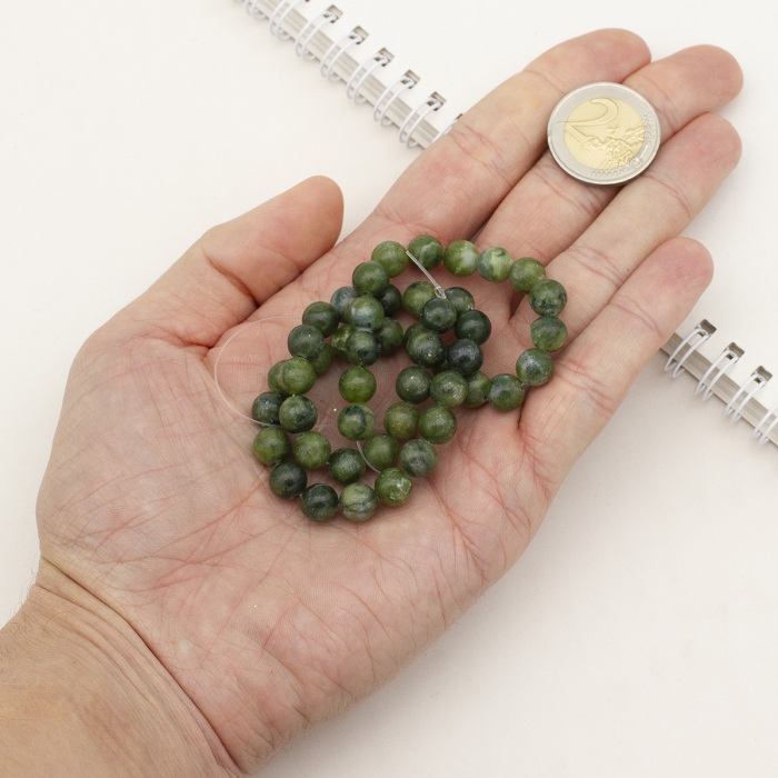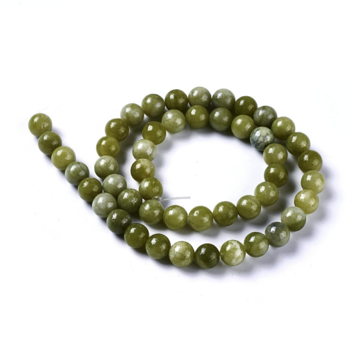 Бусины Натуральный Китайский Нефрит, на нитях, Круглые, 8мм, Отв. 1мм, около 45шт/37см/нить, (УТ100030654)