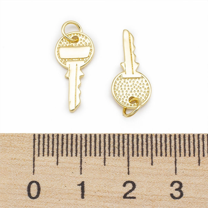 Подвеска Латунь, Ключ, Стойкое Покрытие, Цвет: Золото, Размер: 19х9х1мм, Соединительное кольцо 4х0.8мм, Внутренний диаметр 2.4мм, (УТ100030745)