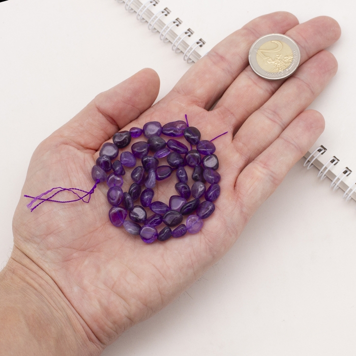 Бусины Натуральный Аметист, на нитях, Самородки, Размер: 8-10х7-8х4-6мм, Отверстие 0.8мм, около 44шт/38см/нить, (УТ100030879)
